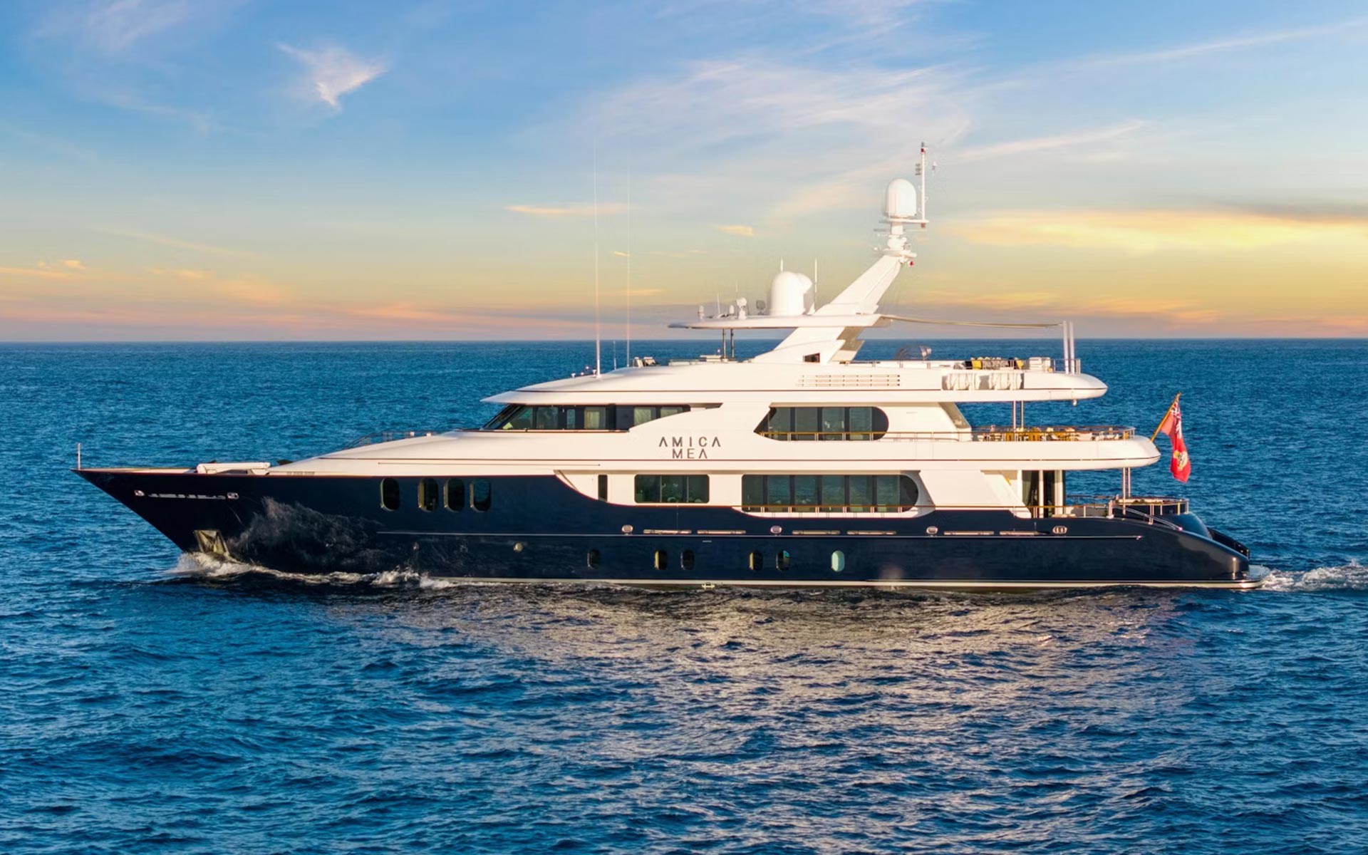 With a sleek profile by designer Glade Johnson and a robust steel hull, she’s built for serious exploration—her 6,000-nautical-mile range makes her as capable of Atlantic crossings as she is of extended Caribbean journeys. Following an extensive refit in 2020, which included a full paint job, new deckheads, updated electronics, lighting and stylish interior fabrics, AMICA MEA is refreshed and refined.