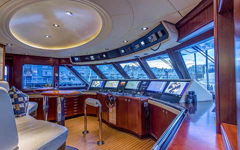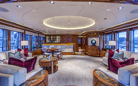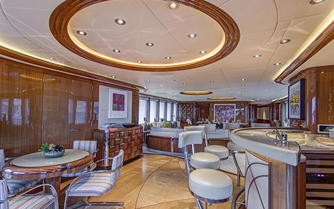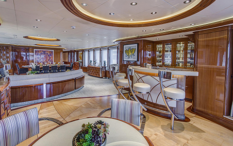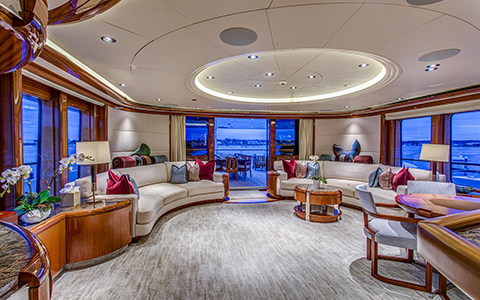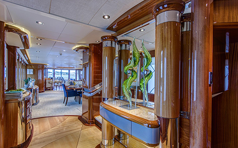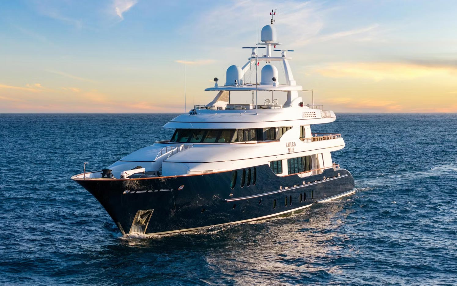 AMICA MEA contains the latest advances in megayacht technology. With a new Cruise IP VSAT system, Internet service is available 24/7. Guests may use the onboard laptops running Windows Vista with wireless access to email and IM. VOIP makes at-sea phone calls almost as easy as in your home. A dual Kaleidescape system provides capacity for literally thousands of movies and CDs on-demand, streaming independently to each stateroom. AMICA MEA is whisper quiet, registering a mere 47 dba in the master stateroom when at sea. And the at-anchor stabilization system makes every night a restful one.